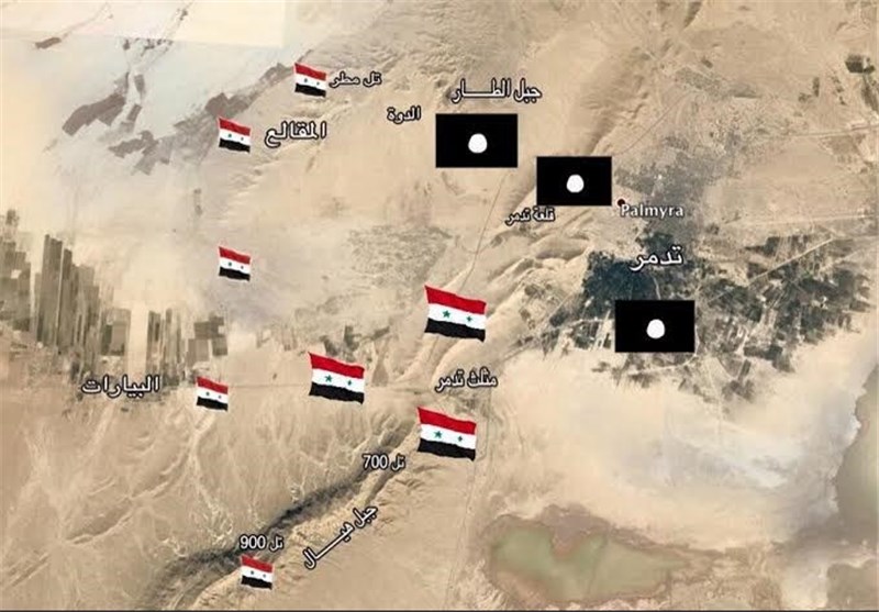 به گزارش خبرنگار تسنیم از دمشق، ارتش سوریه با کمک نیروهای دفاع ملی کوه استراتژیک "الطار" در غرب شهر تدمر و میدان "الزراعه" در ورودی شهر تدمر از سمت دمشق را به کنترل خود در آورد.