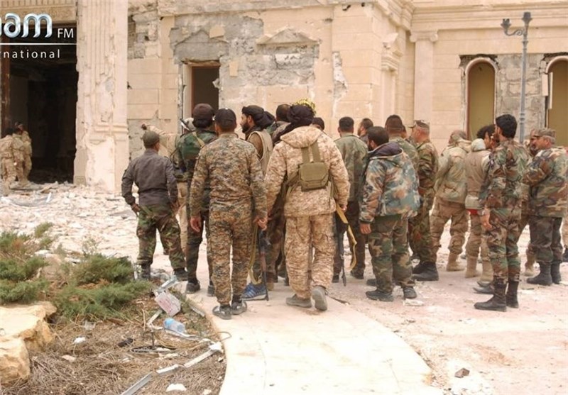 نیروهای ارتش سوریه از بالاترین تپه‌های مشرف به تدمر به سمت قلعه باستانی در حال پاکسازی منطقه از وجود مین‌ها و بمب‌های کارگذاشته شده از سوی تروریست‌ها هستند، این در حالی است که داعشی‌ها برای جلوگیری از تثبیت مواضع نیروهای ارتش در کوه السیریاتیل که صبح  امروز آزاد شد، تلاش می‌کنند. خبرهایی هم درباره متمرکز شدن داعش بر  داخل شهر تدمر و خارج کردن خانواده‌هایشان از شهر حکایت می‌کند.
