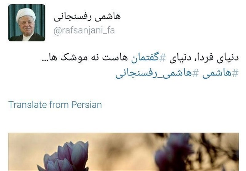 حال امروز آیت الله هاشمی رفسنجانی در اقدامی قابل توجه شرایط را تغییر داد و رسماً توئیت منسوب به خود درباره «جایگاه گفتمان و موشک در دنیای فردا» را تکذیب کردند.