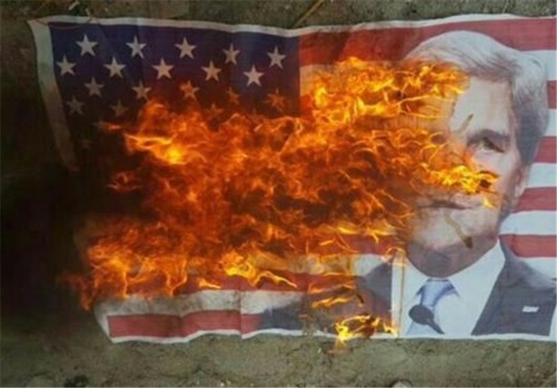به گزارش گروه بین‌الملل خبرگزاری تسنیم به نقل از پرس تی وی، معترضان روز پنج‌شنبه در واکنش به اظهارات جان کری درباره وضعیت حقوق بشری در بحرین، پرچم آمریکا و تصاویر کری را به آتش کشیدند.