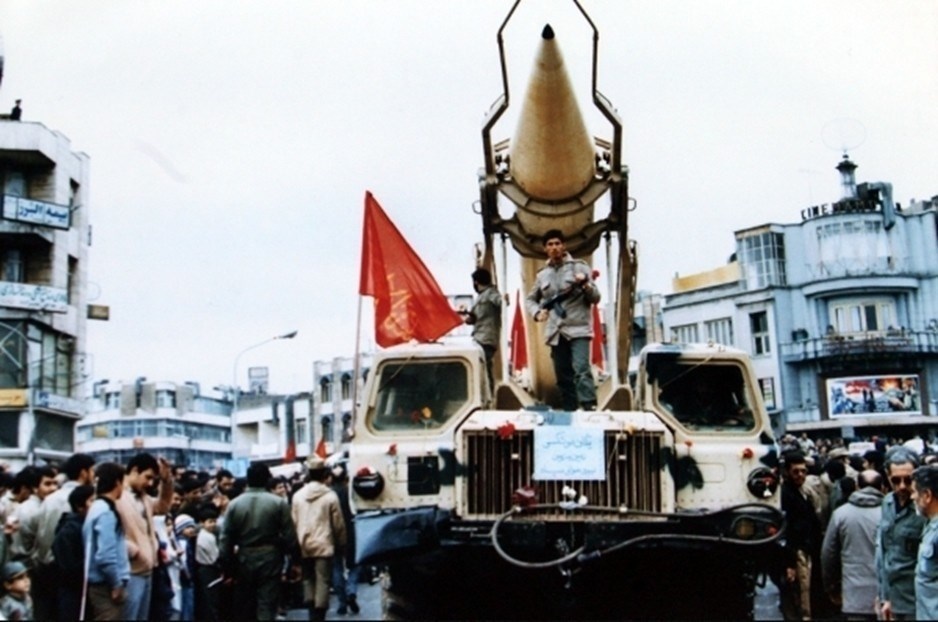 نمایش موشک اسکاد در خیابان‌های تهران در دوران جنگ