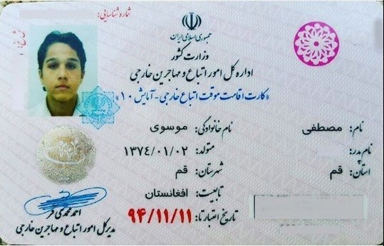 به گزارش خبرنگار فرهنگی خبرگزاری تسنیم، حمید داوودآبادی جانباز، خبرنگار، محقق و نویسنده دفاع مقدس در صفحه اینستاگرام خود عکسی از کارت اقامت یک شهید مدافع حرم افغانستانی را منتشر کرده است و متن زیر را نوشته است: