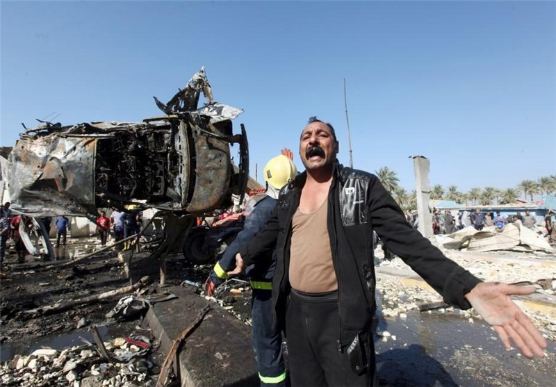 واکنش شهروند عراقی به انفجار یک خودروی بمبگذاری شده در شهر حله در جنوب بغداد