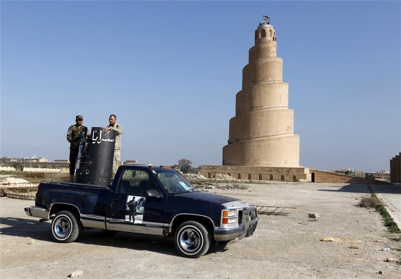 گشتزنی نیروهای داوطلب مردمی در نزدیکی مسجد جامع سامراء