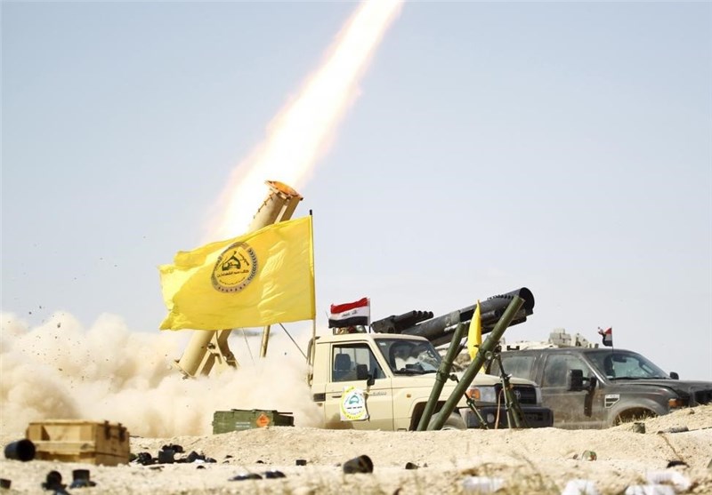 پرتاب موشک از سوی نیروهای نیروهای داوطلب مردمی به سمت مواضع داعش در تکریت