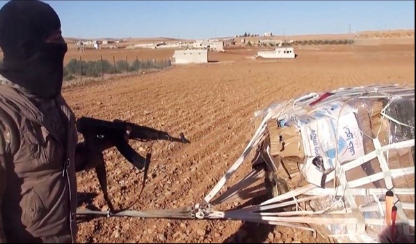 یکی از افسران پلیس در این فیلم میگوید: «یک هواپیمای آمریکایی صبح روز جمعه ساعت 04:00 وارد منطقه جزیره حدیثه در استان الانبار شد و تسلیحات و مهمات برای جنایتکاران داعش فرستاد».