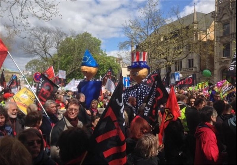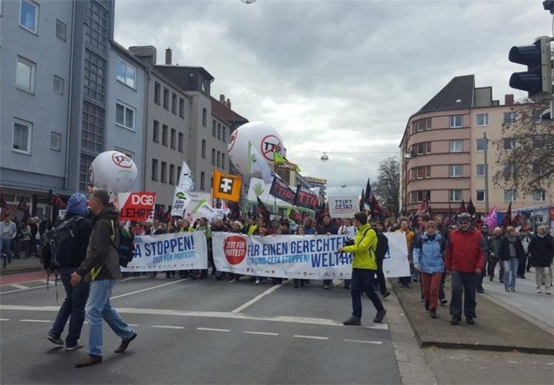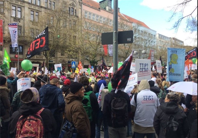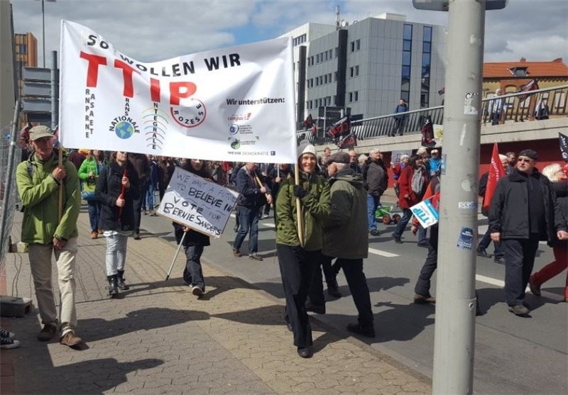 به گزارش گروه بین‌الملل خبرگزاری تسنیم به نقل از بیزینس اینسایدر، حدود 35 هزار نفر از مردم در شهر هانوفر آلمان امروز (شنبه) در اعتراض به پیمان تجاری و سرمایه‌گذاری ترنس-آتلانتیک میان آمریکا و اروپا دست به تظاهرات زدند. این تظاهرات درحالی برگزار شده است که تشکیل دهندگان این تجمع تعداد افراد حاضر در تظاهرات را 90 هزار نفر اعلام کرده‌اند.