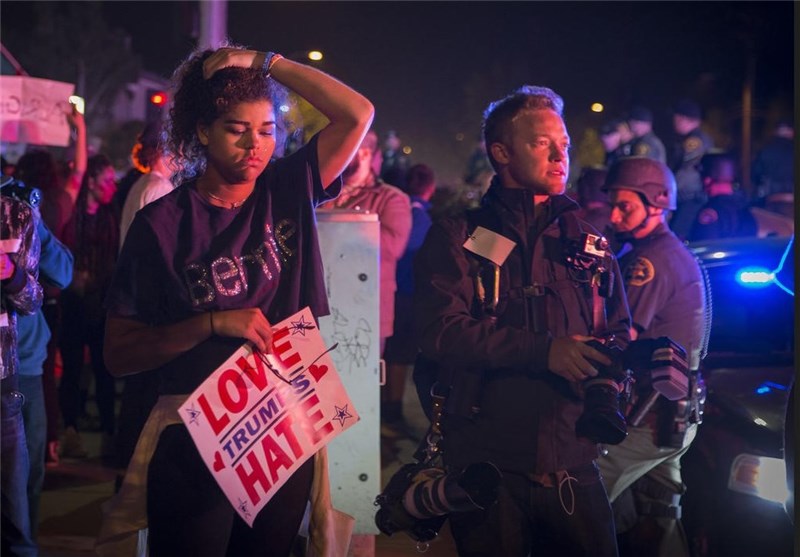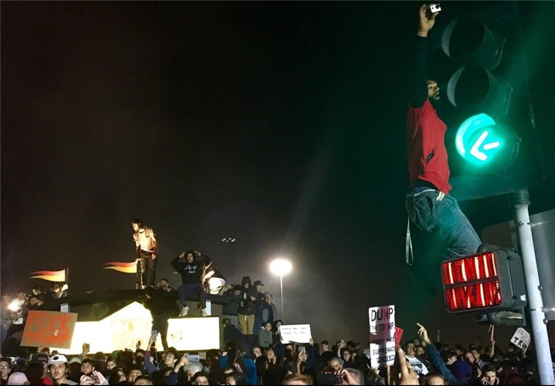 در تظاهرات ضد ترامپ در کالیفرنیا 17 نفر بازداشت شده و یک خودروی پلیس نیز تخریب شد.