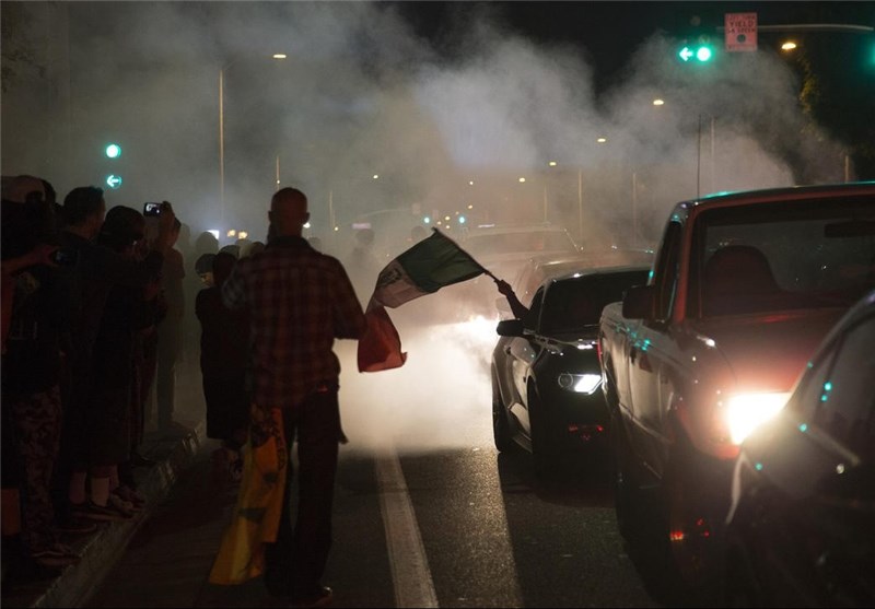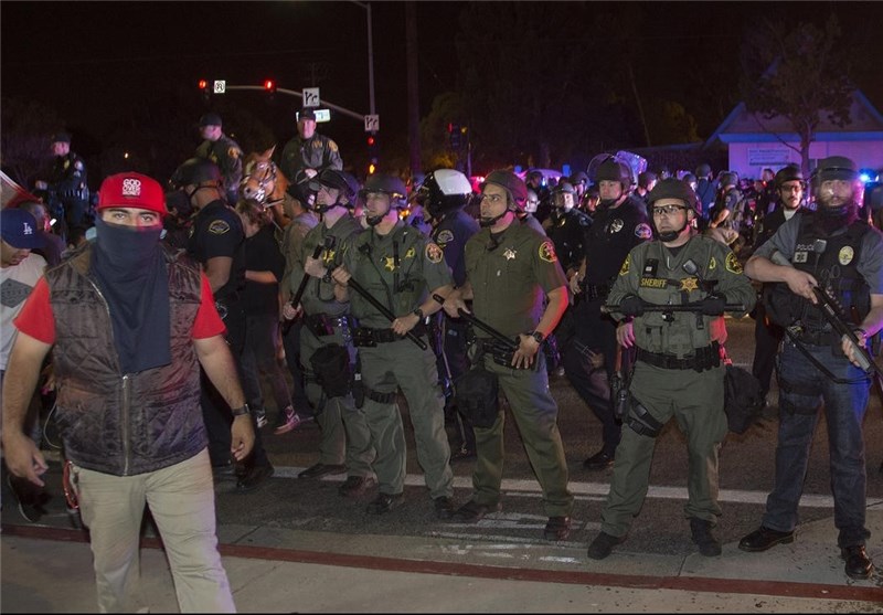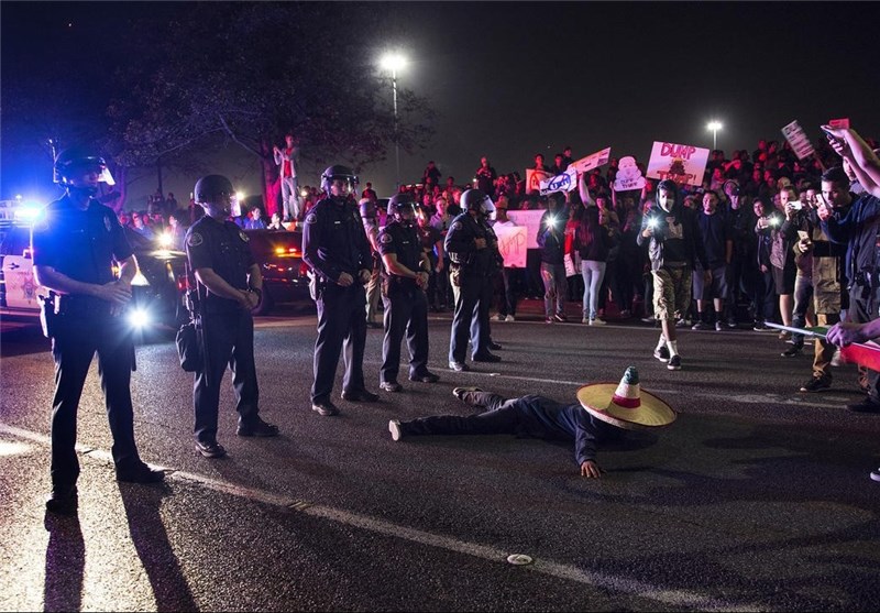 تخریب خودروی پلیس در تجمع ضدترامپ در کالیفرنیا + تصاویر