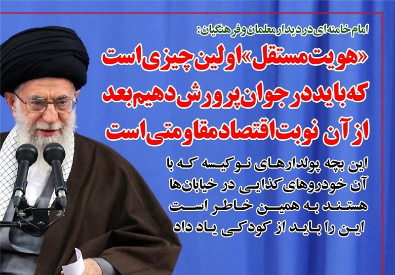 فوتوتیتر/امام خامنه ای:«هویت مستقل» اولین چیزی است که باید در جوان پرورش دهیم؛ بعد از آن نوبت اقتصاد مقاومتی است
