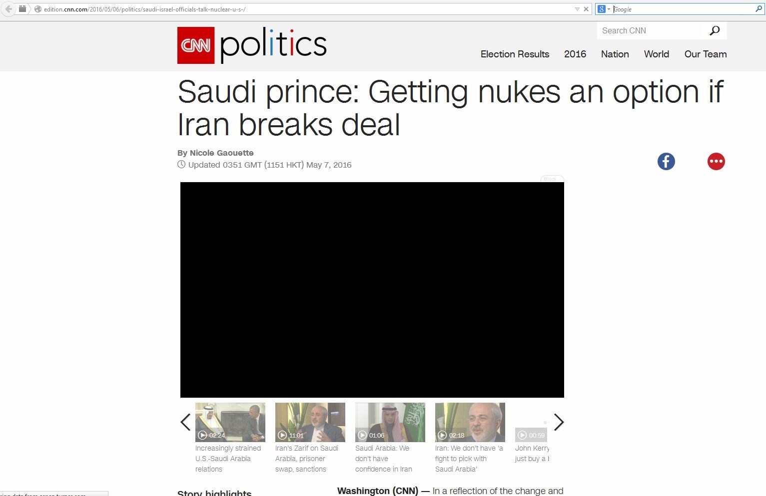 ترکی الفیصل در ادامه گفت که اگر ایران به سوی بمب (هستهای) گام بردارد «تمام گزینهها» روز میز خواهد بود، «از جمله در اختیار گرفتن سلاحهای هستهای، برای مقابله با هر آنچه نهایتا از جانب ایران برخیزد».