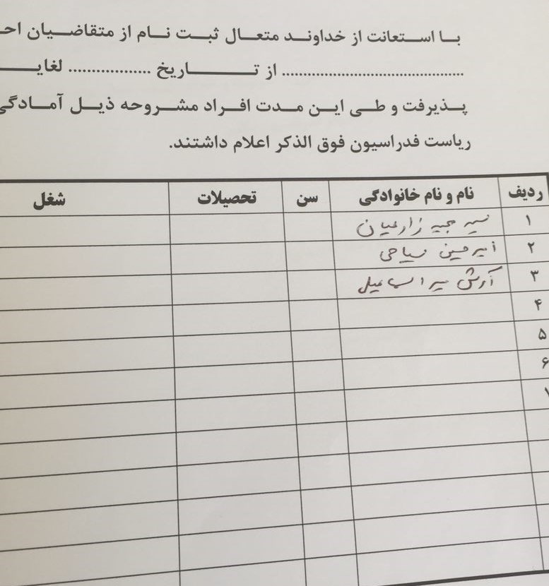 اسامی ثبتنام کنندگان به شرح زیر است: