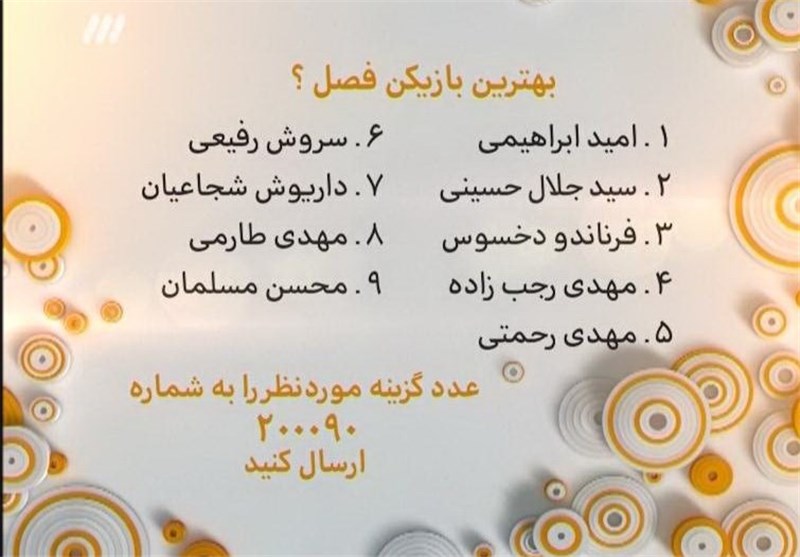 نظرسنجی این برنامه اختصاص داشت به انتخاب بهترین بازیکن لیگ پانزدهم که در این نظر سنجی نام 9 گزینه مطرح شده بود که در نهایت دوستداران فوتبال به گزینه 8 که مهدی طارمی باشد بیشترین رای را دادند.