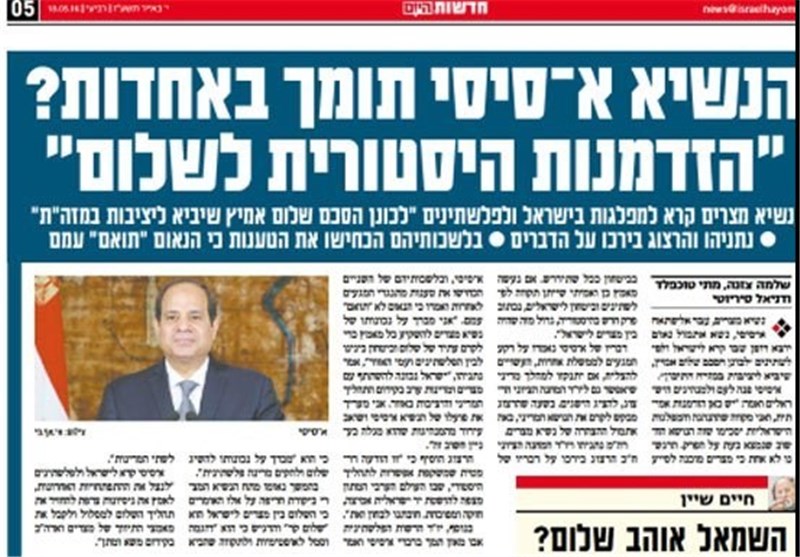 این روزنامه ضمن پرداختن به سخنان السیسی، نوشت که برای نخستین بار کابینه رژیم صهیونیستی و معارضین از طرح صلح بین فلسطینیان و اسرائیلیها استقبال میکنند.
