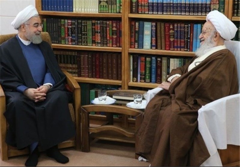 رئیس جمهور پیش از دیدار با آیت الله ناصر مکارم شیرازی، در بیت آیت الله صافی گلپایگانی حضور یافته بود.