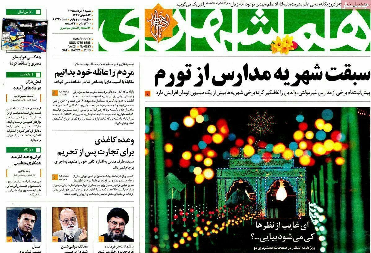 تصاویر صفحه نخست روزنامه‌های‌ 30 اردیبهشت