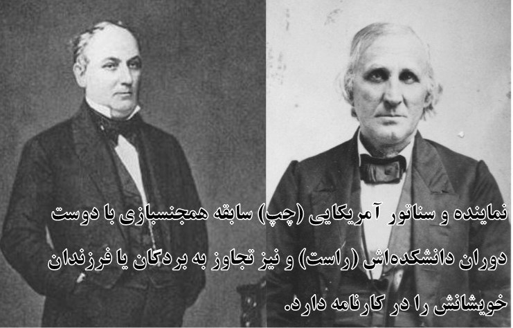 جیمز هنری هاموند (James Henry Hammond)، نماینده مجلس آمریکا که بعدها به سناتوری رسید، رابطه همجنسبازی با یکی از دوستان دوران دانشگاهش داشت، وی با برادرزادگان نوجوانش نیز رابطهای داشت که از آن تعبیر به «یک هوسبازی کوچک» میکرد. وی همچنین با بردهها نیز رابطه جنسی داشت. یکی از این بردهها تنها 12 سال سن داشت.
