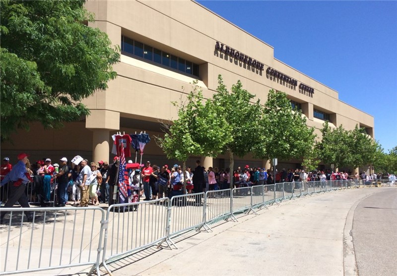به گزارش شبکه تلویزیونی سی ان ان، دونالد ترامپ نامزد انتخابات ریاست جمهوری آمریکا در تجمع انتخاباتی در جمع هوادارانش در شهر آلبوکرکیو در ایالت نیومکزیکو حاضر شد و سخنرانی کرد. حدود یک هزار نفر در مقابل محل سخنرانی ترامپ جمع شدند. شماری از آنها از موانع امنیتی عبور کردند و به درهای ورودی محل سخنرانی رسیدند. اما نیروهای پلیس و نیروهای ضدشورش در مقابل آنها ایستادند و مانع از ورود آنها به محل سخنرانی ترامپ شدند.