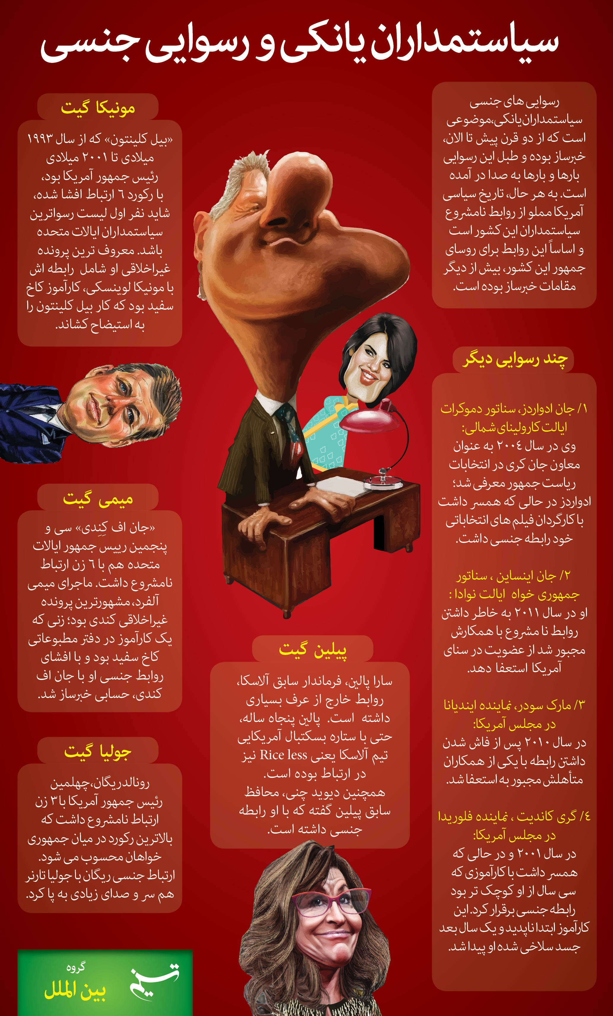 به گزارش گروه بین الملل خبرگزاری تسنیم، «بیل کلینتون» که از سال 1993 میلادی تا 2001 میلادی رئیس جمهور آمریکا با رکورد 6 ارتباط افشا شده، شاید نفر اول لیست رسواترین سیاستمداران ایالات متحده باشد. معروف ترین پرونده غیر اخلاقی او شامل رابطه اش با مونیکا لوینسکی، کارآموز کاخ سفید بود که کار بیل کلینتون را به استیضاح کشاند....