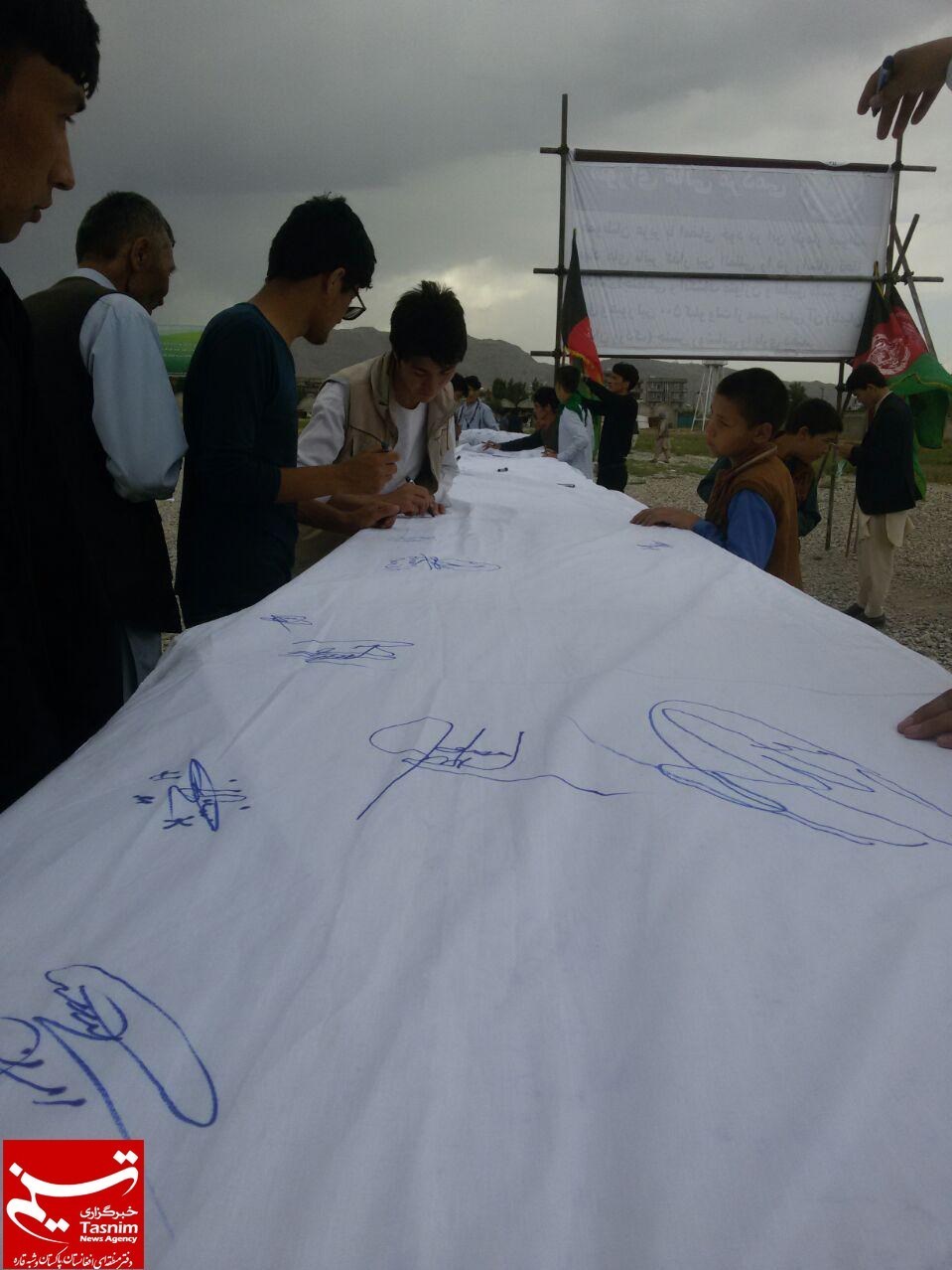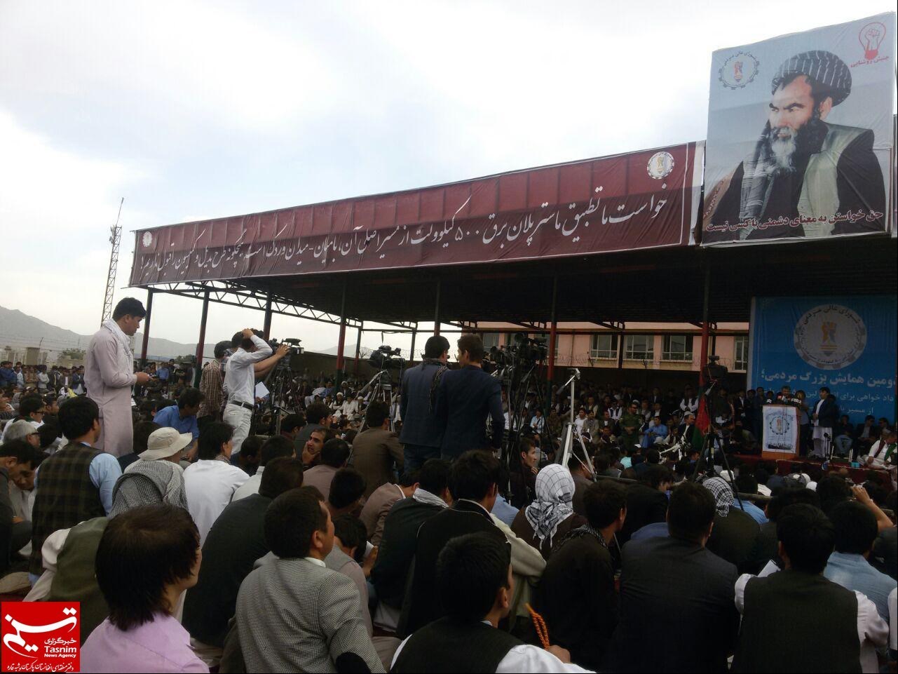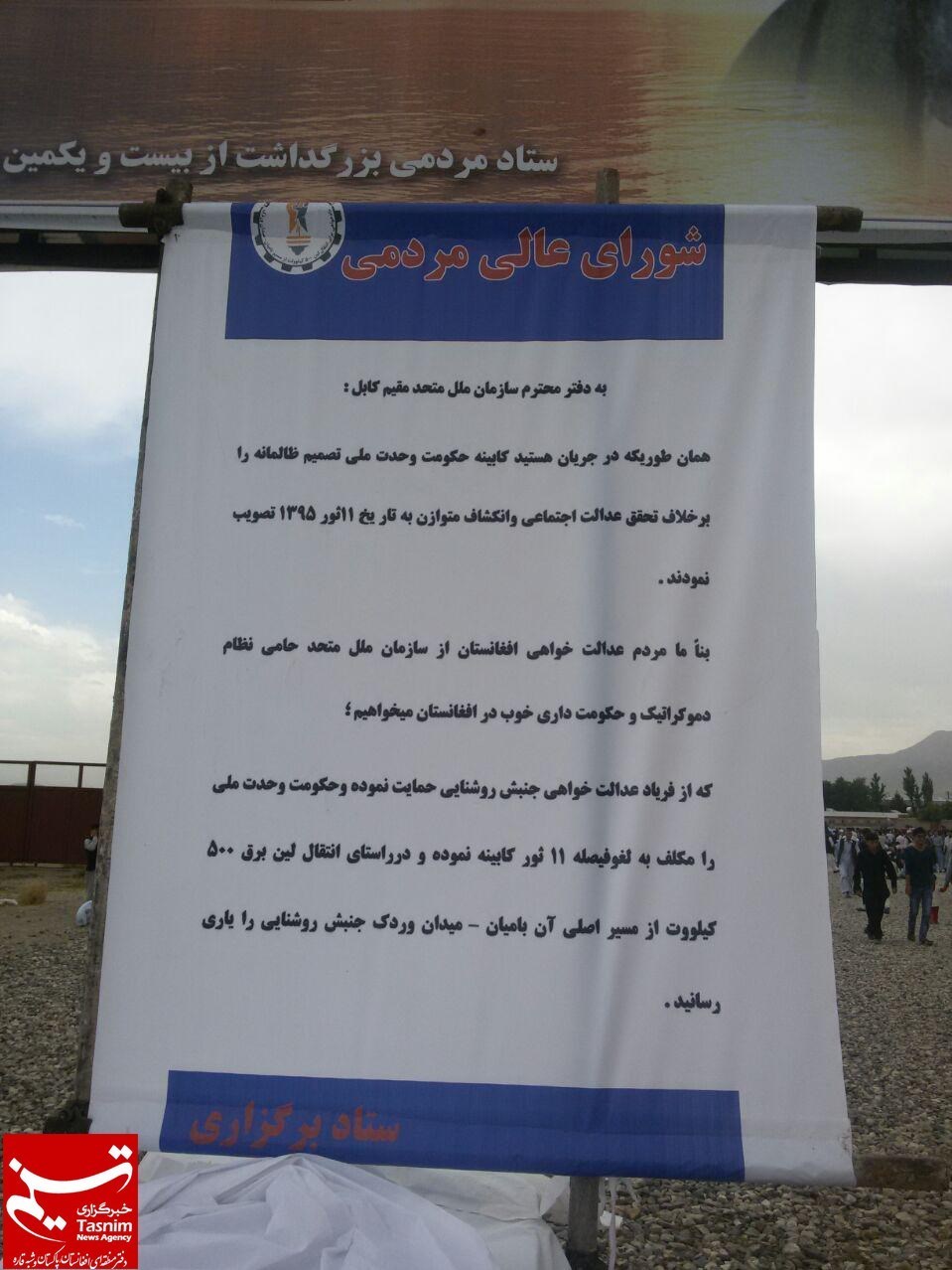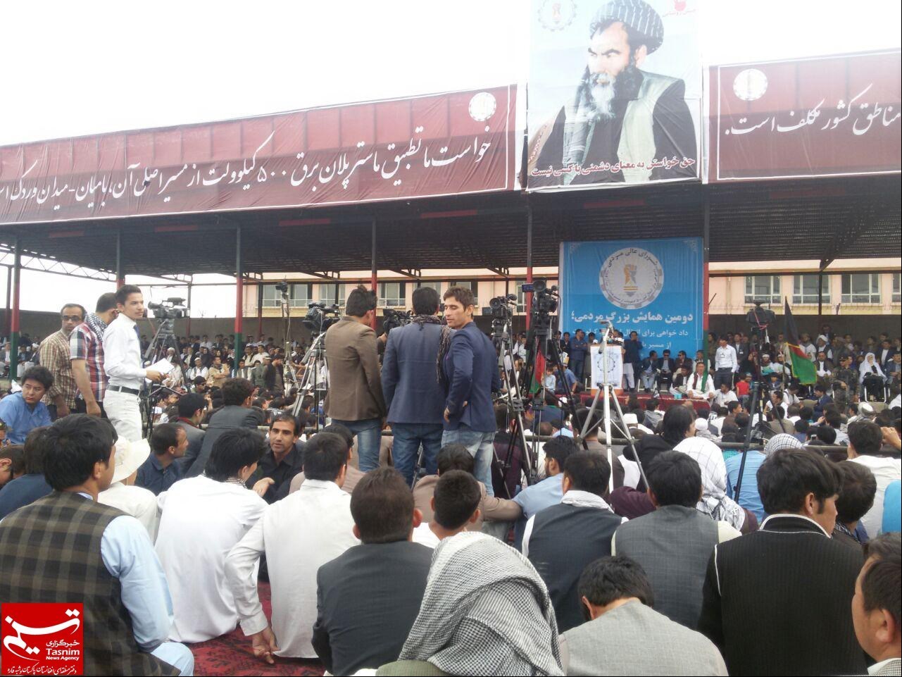 در این مراسم، معترضان خواستار لغو تصمیم کابینه دولت افغانستان مبنی بر عدم تغییر مسیر خطوط انتقال برق از بامیان به سالنگ شدند.