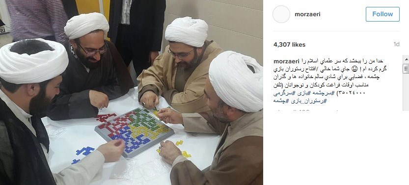 زائری عکسی در اینستاگرامش منتشر کرد که در آن برخی از روحانیون مشغول بازی فکری هستند .