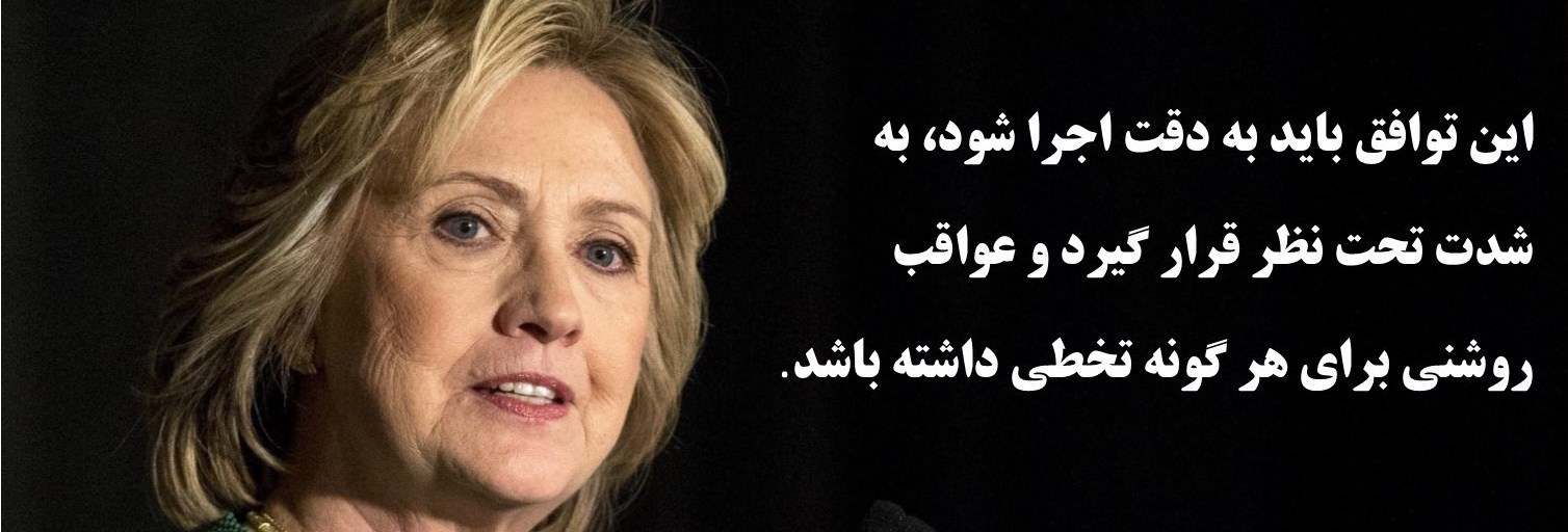 هیلاری کلینتون سناتور ایالت نیویورک که چند سالی سکان وزارت خارجه دولت «باراک اوباما» را بهعهده داشت، ظاهراً از حامیان توافق هستهای به شمار میآید. بعد از شکلگیری این توافق بود که او در بیانیهای اعلام کرد: «این توافق با اجرای درست، راستیآزمایی دقیق و پیامدهای شدید در صورت هرگونه نقض تعهد از سوی ایران، آمریکا، اسرائیل و سایر شرکای عرب ما را امنتر ساخته است».