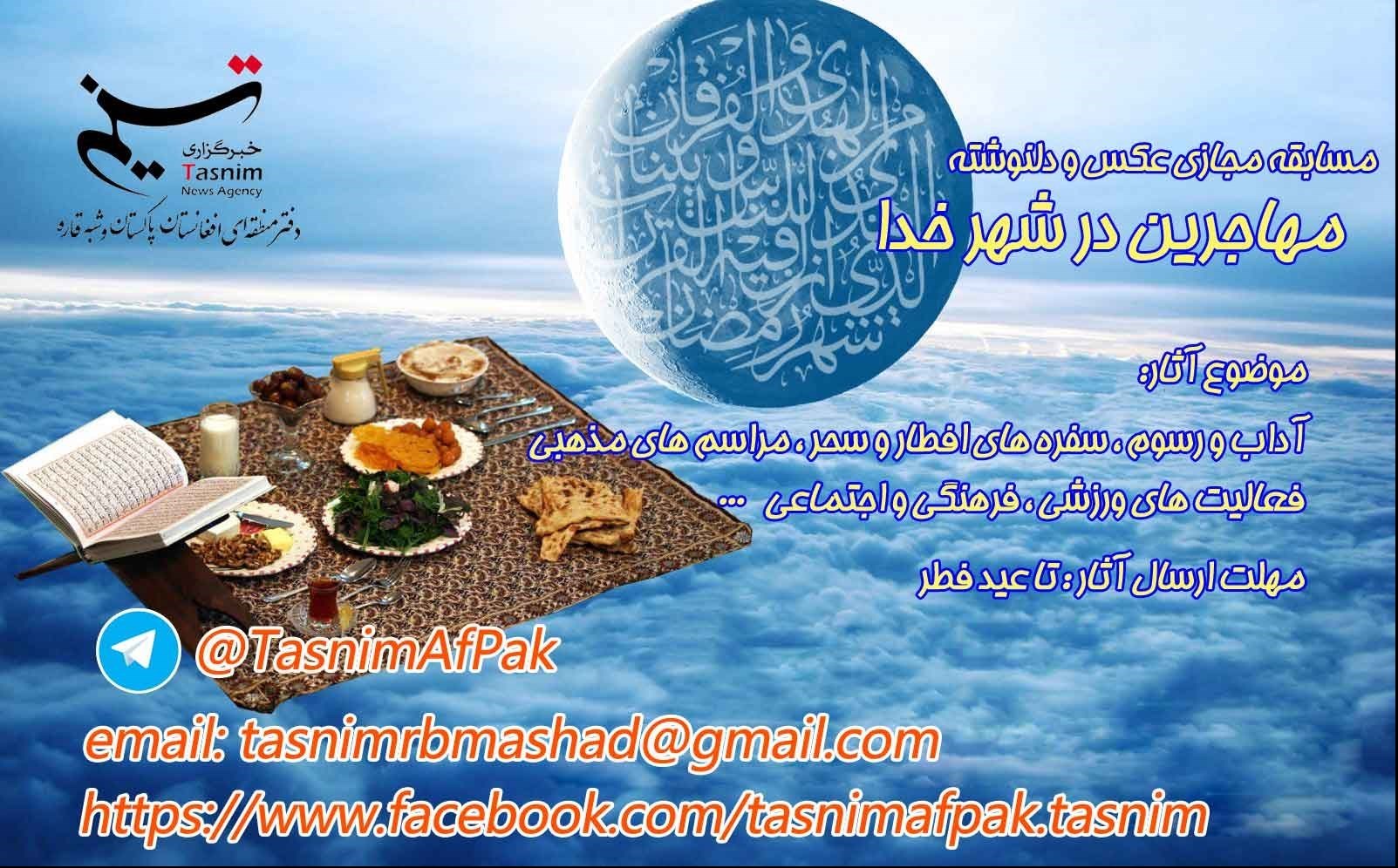 دفتر منطقهای افغانستان و شبهقاره خبرگزاری تسنیم به مناسبت فرا رسیدن ماه مبارک رمضان در نظر دارد مسابقه مجازی ویژه مهاجرین برگزار کند.