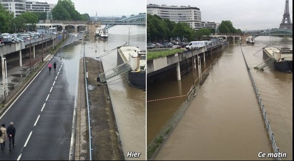 رسانه‌های فرانسوی اعلام کرده‌اند که بارندگی و سیلاب روزهای اخیر در پاریس از دهه 1980 به بعد بی‌سابقه است.