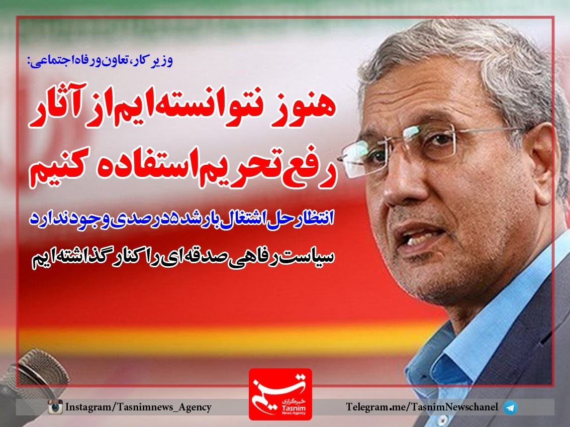 وزیر کار، تعاون و رفاه اجتماعی با بیان اینکه هنوز نتوانسته‌ایم از آثار رفع تحریم استفاده کنیم، گفت: براساس پیش‌بینی‌های صورت گرفته انتظار رشد 5 درصدی اقتصاد وجود دارد ولی انتظار حل کردن اشتغال با این رشد وجود ندارد.