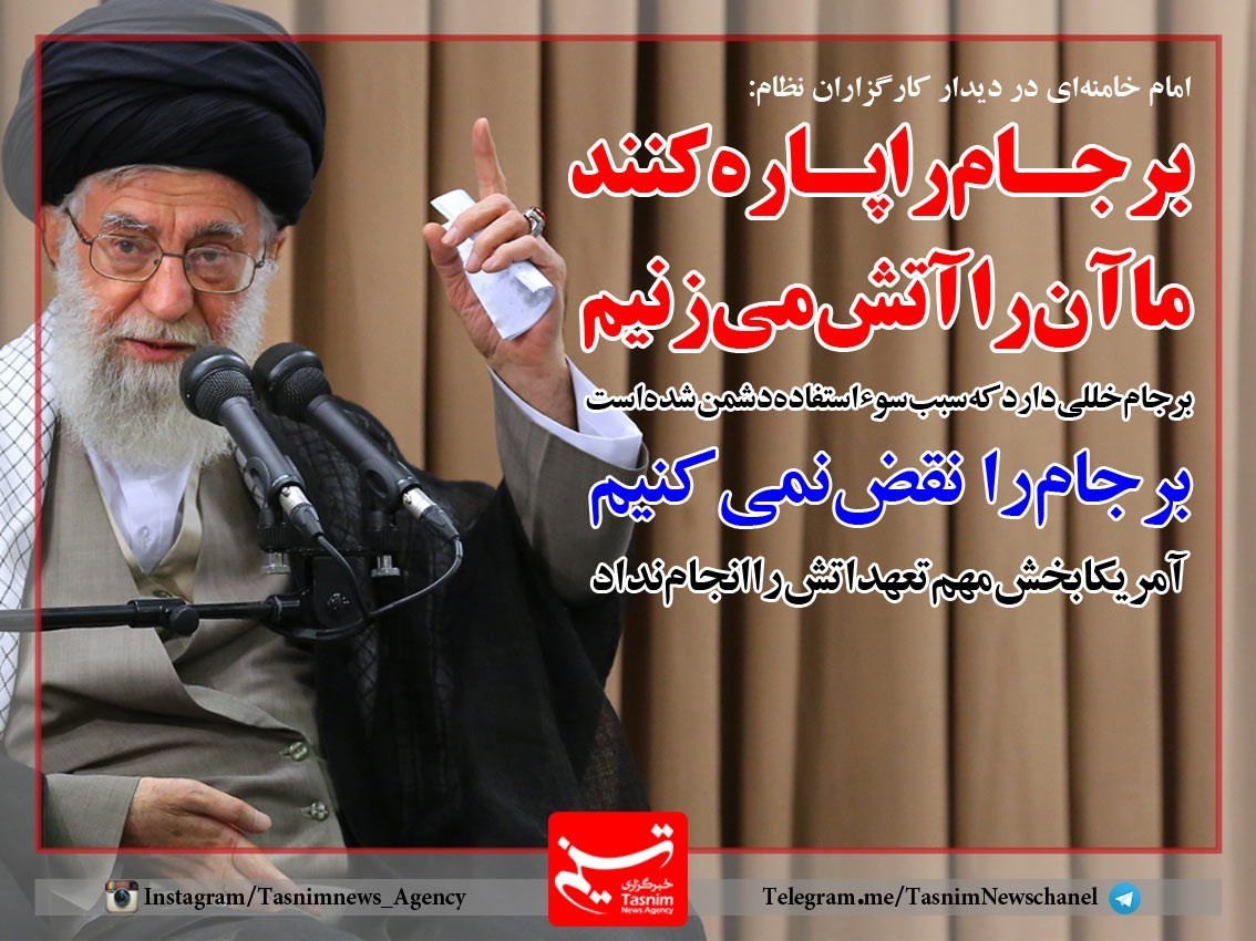 فوتوتیتر/امام خامنه ای:برجام را پاره کنند ما آن را آتش می زنیم