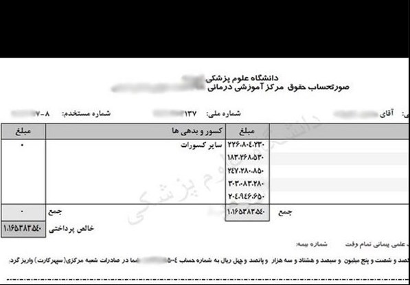 « 7 میلیون و هفتصد هزار تومان مبلغ سومین فیشی است که در یک ماه برای این عضو دانشگاه علوم پزشکی صادر شده است.»