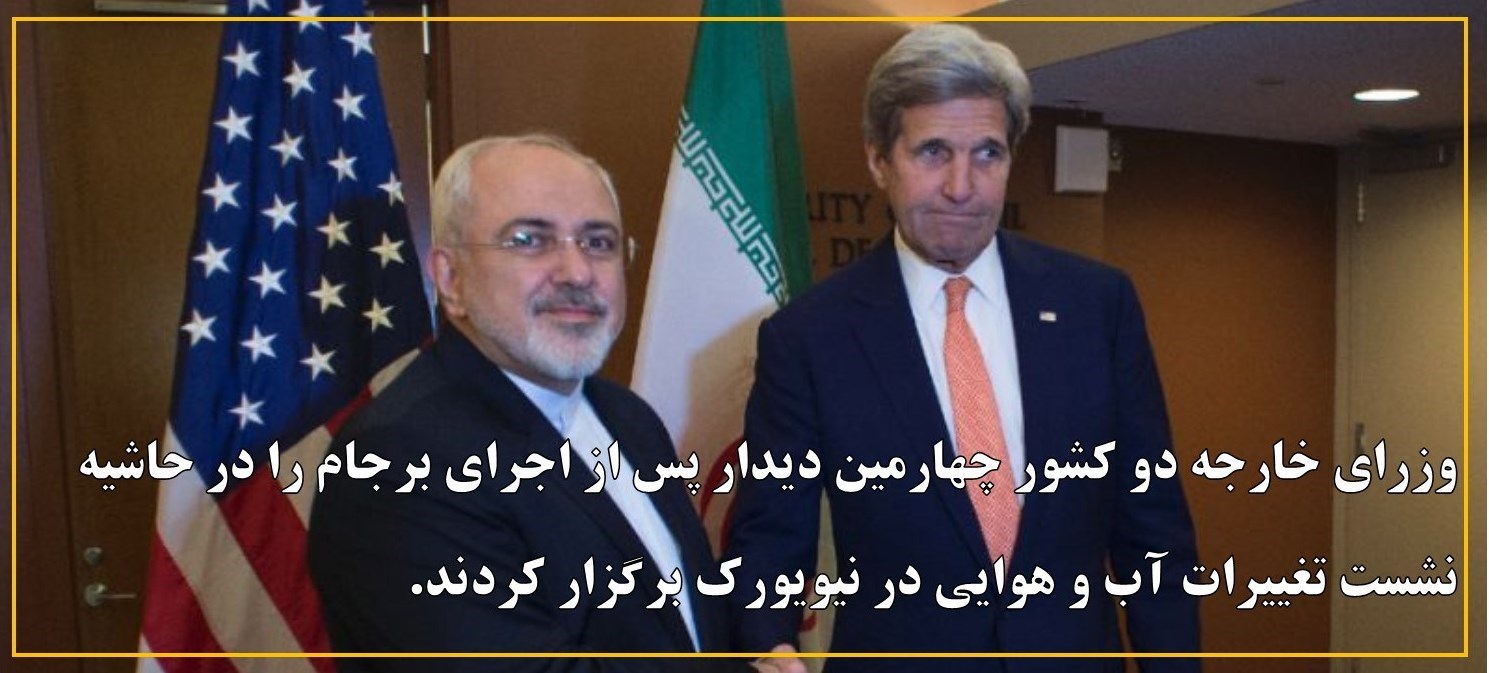 دو وزیر 31 فروردین ماه سال جاری این بار در حاشیه نشست تغییرات آب و هوایی سازمان ملل در نیویورک پشت میز مذاکره نشستند تا در حالی که کمکم صدای اعتراض ایرانیها درباره عدم رفع کامل تحریمها از هر سو به گوش میرسید، درباره اجرای برجام به رایزنی پردازند.