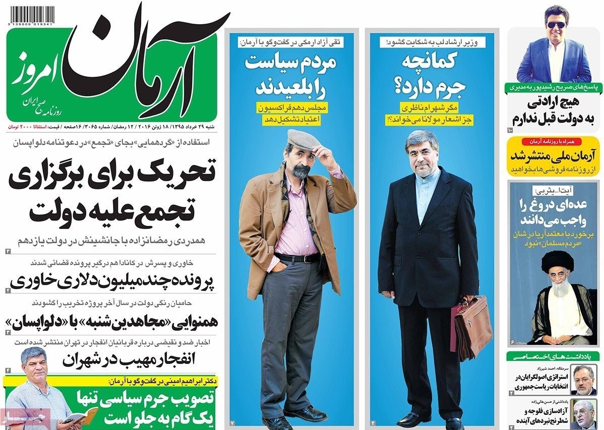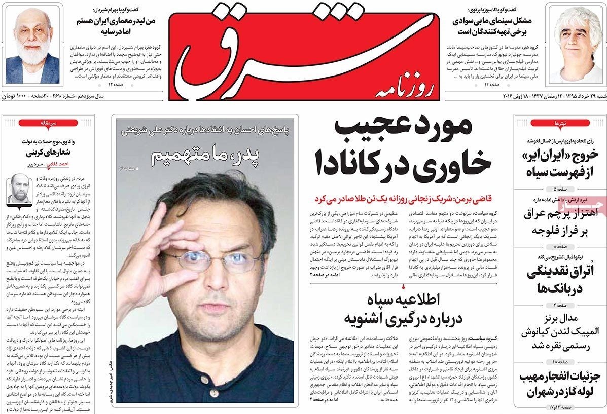 تصاویر صفحه اول روزنامه‌های‌ 29 خرداد