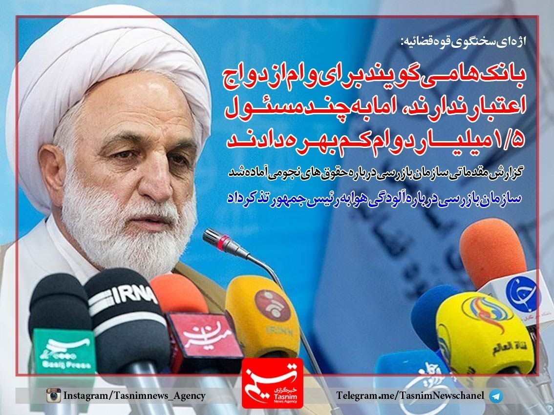 معاون اول قوه قضائیه گفت: بانکها برای پرداخت وام ازدواج که تصویب شده به شدت اصرار دارند که نقدینگی وجود ندارد اما در این قضیه به 5 نفر هر کدام 300 میلیون تومان که جمعا یک و نیم میلیارد تومان می‌شود وام داده‌اند.