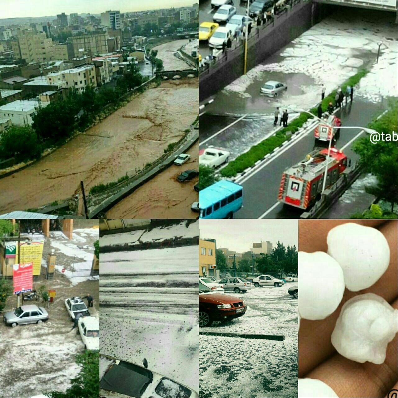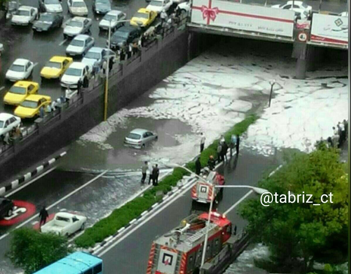 شدت بارش باران و تگرگ در تبریز به میزانی بود که در عرض یک ساعت بیشتر زیرگذرها و شاهراه‌های ارتباطی شهر با آب‌گرفتگی شدید مواجه شده است.