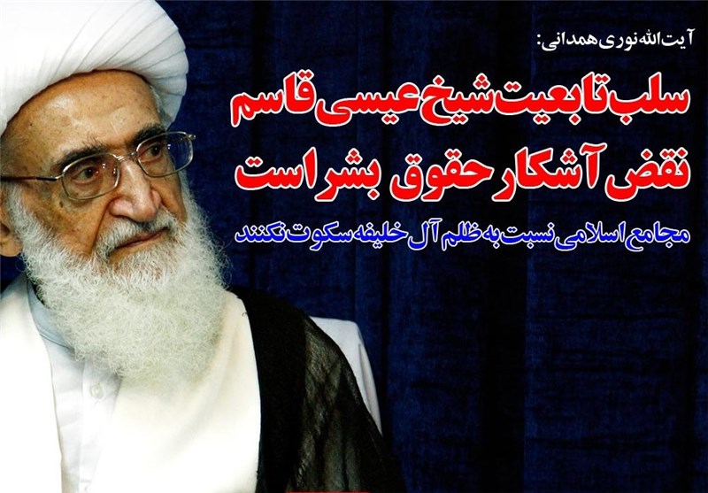 فوتوتیتر/آیت الله نوری همدانی:سلب تابعیت شیخ عیسی قاسم نقض آشکار حقوق بشر است
