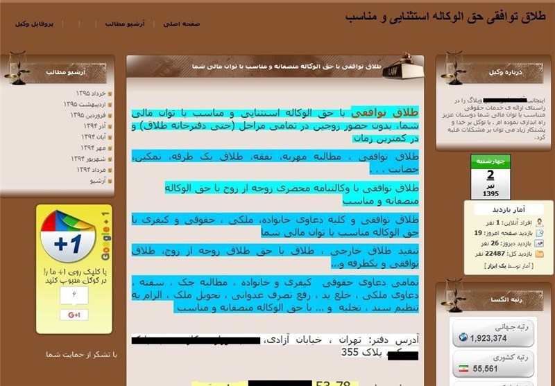 عباس یعقوبی/ خبرگزاری تسنیم؛ «اگر شما و همسرتان، من و همکارم را بهعنوان وکیل انتخاب کنید و وکالت بدهید نهایتاً یک هفته تا 14 روز حکم طلاق را برایتان میگیریم»؛ این صحبتهای وکیلی است که در تبلیغات خود مدعی شده طلاق توافقی را با حق الوکاله مناسب انجام میدهد.