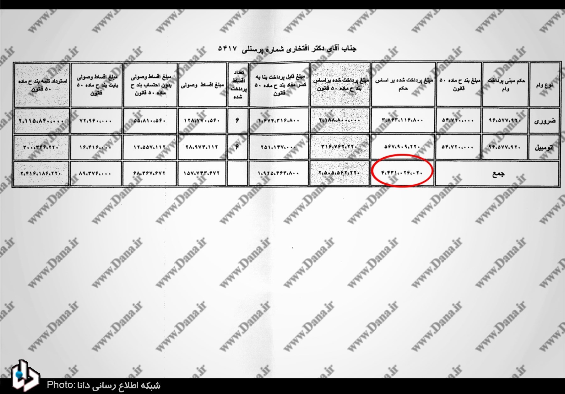 افتخاری، معاون سابق طرح و برنامه و عضو فعلی هیئت مدیره بیمه ایران نیز در مجموع 620 میلیون تومان وام دریافت کرده است.