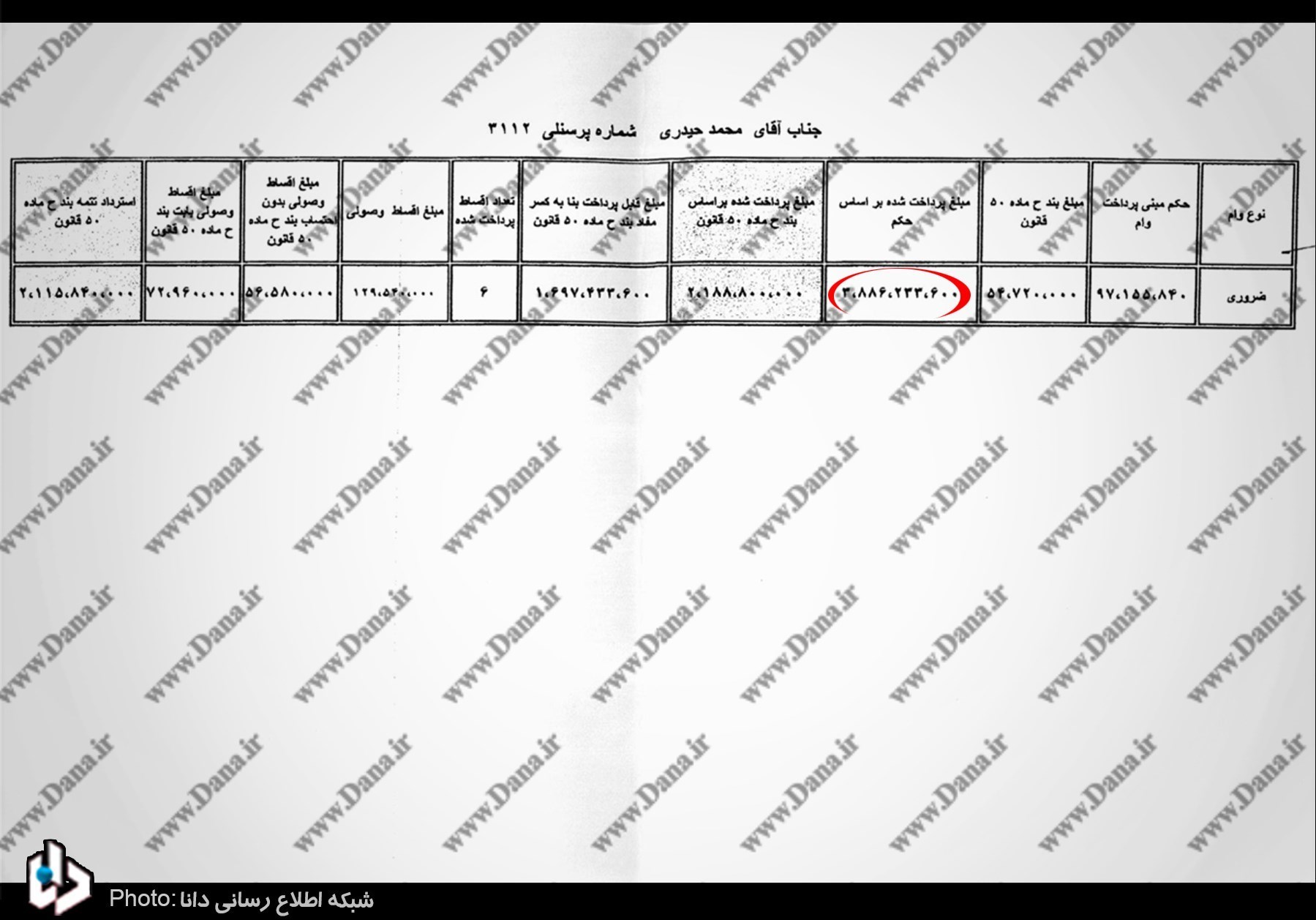 طبق سند فوق، حیدری معاون فنی و عضو فعلی هیئت مدیره بیمه ایران نیز رقمی بالغ بر 570 میلیون تومان وام دریافت کرده است.