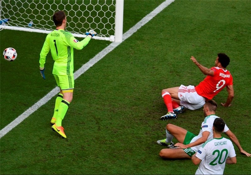 به گزارش خبرگزاری تسنیم، تیم ملی ولز امشب (شنبه) در ورزشگاه 45 هزار نفری پارک‌دو پرنس شهر پاریس با گل به خودی دقیقه 75 گرث مک‌آئولی با نتیجه یک بر صفر از سد ایرلند شمالی گذشت و در نخستین حضورش در مسابقات یورو به مرحله یک چهارم نهایی راه یافت و رکورد تاریخی را از خود بر جای بگذارد.
