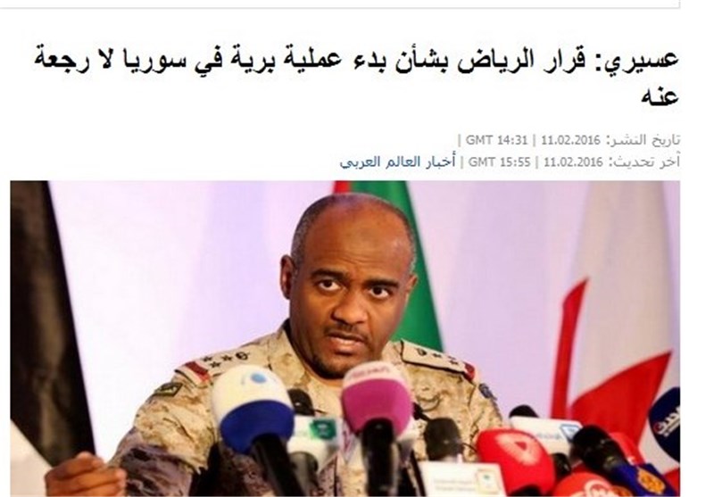یازدهم فوریه گذشته بود که مقامات سعودی علنا تهدید به دخالت نظامی زمینی در سوریه کردند، تهدیدی که از زبان احمد عسیری سخنگوی ائتلاف جنگ افروزان سعودی و متحدانش علیه یمن و عادل الجبیر وزیر خارجه و دیگر مقامات آل سعود مطرح و تکرار شد.