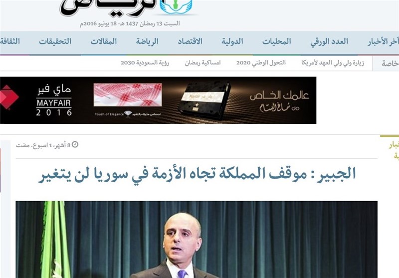 الجبیر در یکی از دیدارهایش با سرگئی لاوروف وزیر خارجه روسیه تاکید کرده بود که موضع پادشاهی سعودی درباره سوریه هرگز تغییر نخواهد کرد که این موضعگیری نشان داد رژیم آل سعود همچنان بر ادامه سیاست ویرانگری و کشتار و ناامنی در سوریه پافشاری میکند.