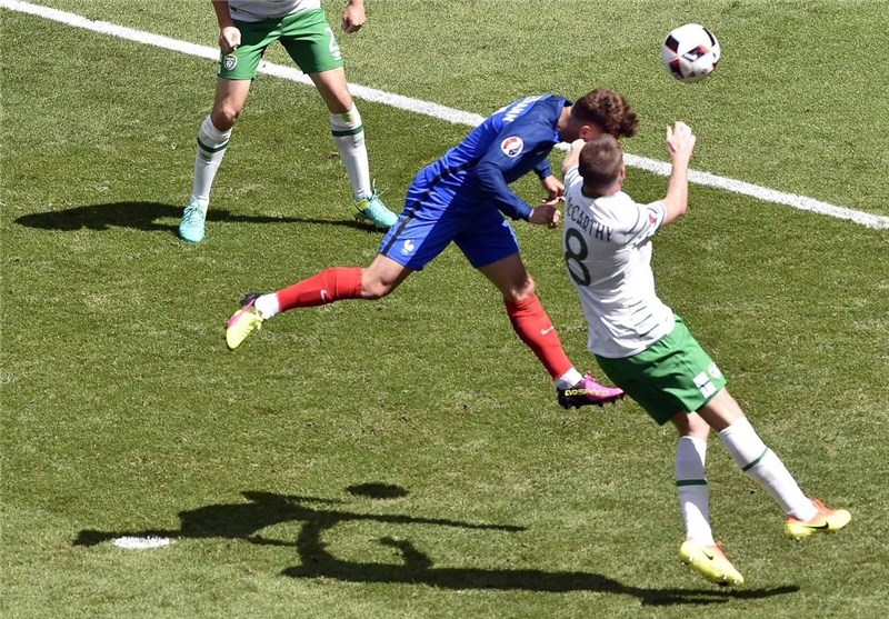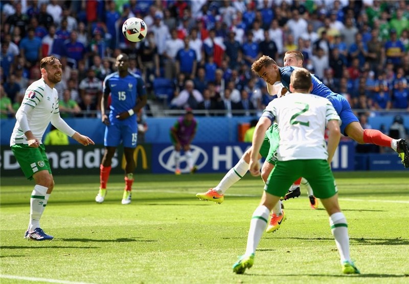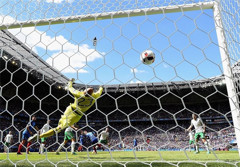 به گزارش خبرگزاری تسنیم، تیم ملی فوتبال فرانسه با جبران شکست یک بر صفر خود در نیمه اول، با نتیجه 2 بر یک از سد ایرلند سختکوش گذشت و به مرحله یک چهارم نهایی مسابقات یورو 2016 صعود کرد. عکاسان حاضر در ورزشگاه 59 هزار نفری لومیرز شهر لیون تصاویر خاص و جالبی را از این بازی ثبت کردند که تعدادی از آنها را در زیر می‌بینید.