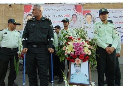 در این آیین دوستان شهید منوچهر کرمی و شهید جواد ویسی با چشمانی اشکبار پیکر دومین همکار شهید خود در نیروی انتظامی ماهشهر را تشییع کردند و با این جوان رشید وداع غمباری داشتند.