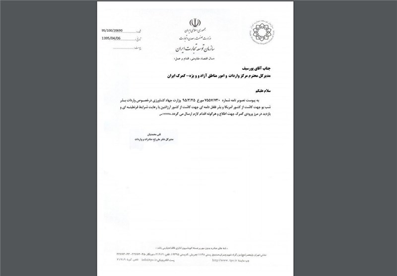 بنابراین گزارش، باغستانی رئیس سازمان حفظ نباتات با ارسال نامهای به قائممقام بازرگانی وزیر جهاد کشاورزی با اشاره به اینکه واردات این محصولات در سطح ریسک متوسط قرار دارد، با واردات این محصولات بر اساس شرایط قرنطینهای موافقت کرد.