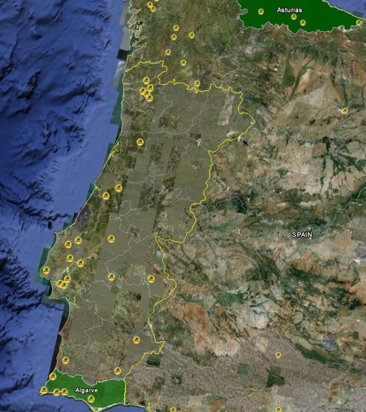 در حال حاضر مطابق نقشه زیر، مناطق محدود و برخی از شرکتها و سازمانهای کشور پرتغال در حال کشت محصولات تراریخته هستند.