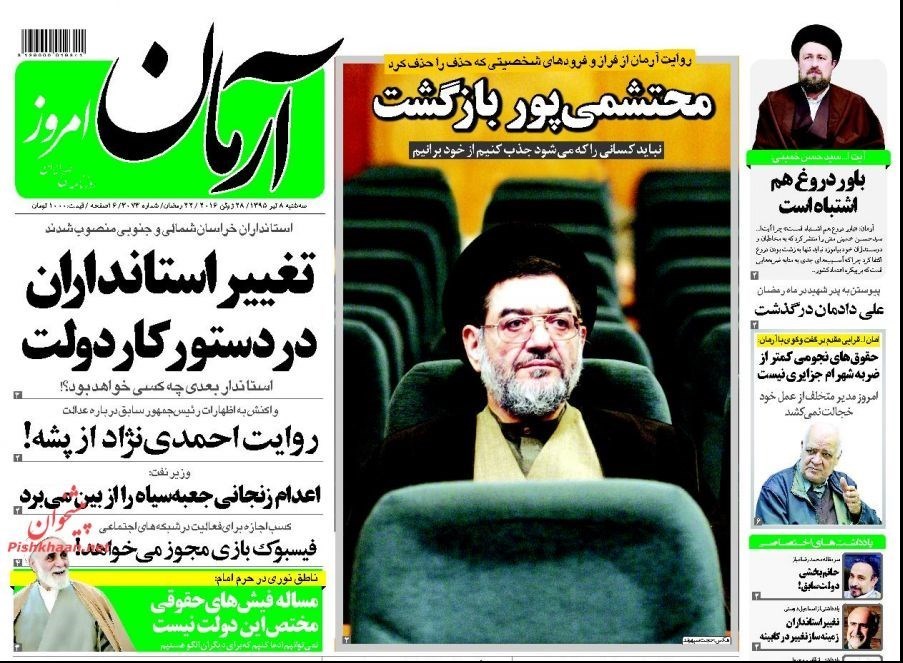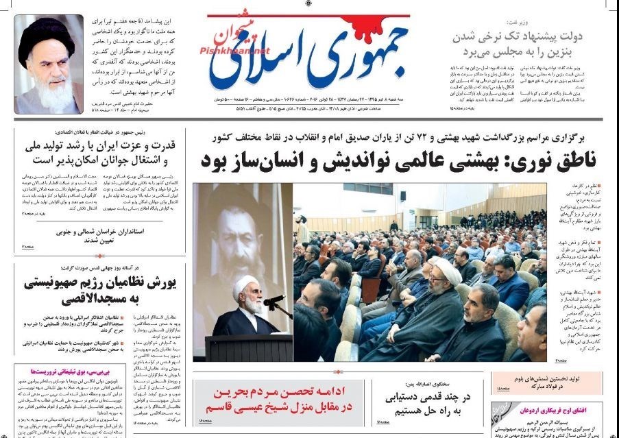 تصاویر صفحه اول روزنامه‌های سه‌شنبه 8 تیر