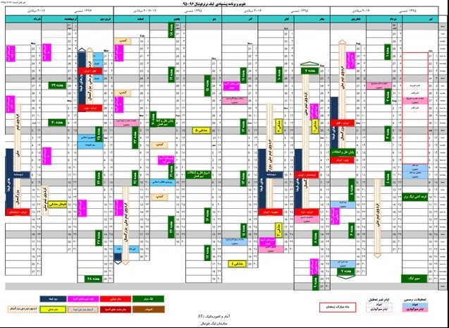 سازمان لیگ فوتبال ایران، مانند سالهای گذشته تقویم 30 هفتهای مسابقات لیگ برتر و رقابتهای جام حذفی را به شرح زیر اعلام کرد.