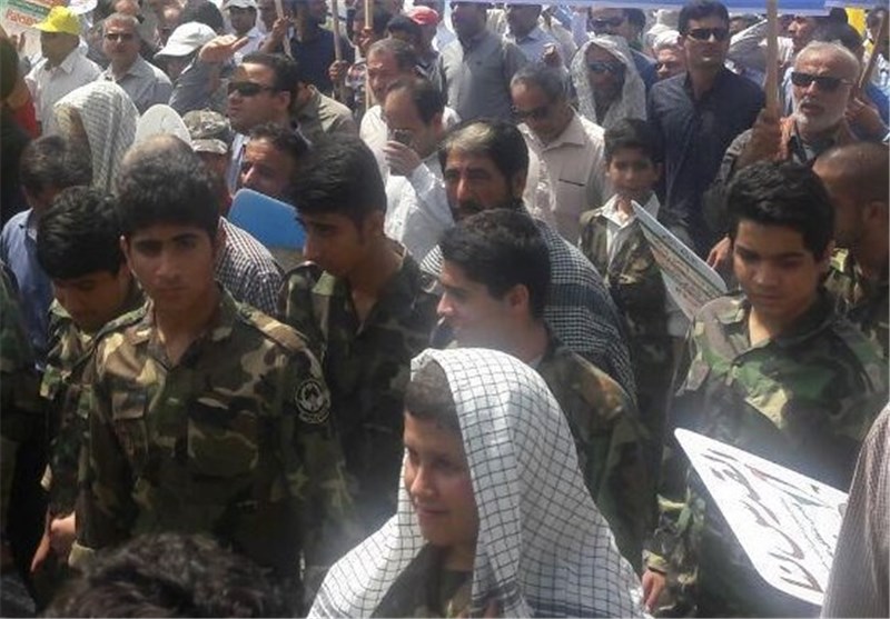 راهپیمایی در بوشهر با حضور حماسی مردم روزهدار بوشهری در زیر آفتاب سوزان این شهر از خیابان امام خمینی(ره) بوشهر آغاز شده و تا مصلی جمعه ادامه دارد.
