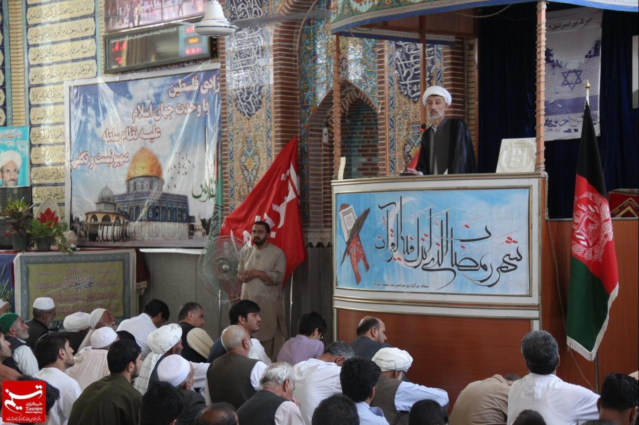 به گزارش خبرنگار دفتر منطقه‌ای خبرگزاری تسنیم در هرات، حجت‌الاسلام و المسلیمن «رجب‌زاده» امام جمعه هرات امروز مصادف با روز جهانی قدس در خطبه‌های نمازجمعه این ولایت به مسائل جاری خاورمیانه، خصوصا قدس و مظلومیت فلسطین پرداخت.